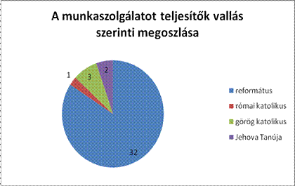 A visszaemlékezők vallási összetétele tükrözi a magyarok felekezeti arányát a magyarok körében. (4. ábra) Látható, hogy az adatközlők többsége – 32 személy – református, amely felekezethez való hovatartozásnak a megtagadása, illetve magyarságának az eltitkolása meg is menthette volna az egyik válaszadót: „Én elszöktem, de éngem elfogtak útközbe. Nem éngem, hanem minket, akik eljöttünk. Öten szöktünk, kettő azt mondta, ő görög katolikus, ő ukrán, azokat elengedték. Mi azt mondtuk, mi magyarok vagyunk, minket nem engedtek.”